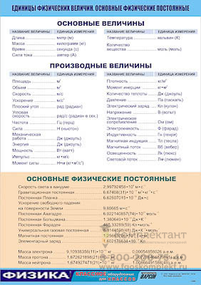 Таблица демонстрационная Единицы физических величин. Основные физические постоянные (винил 70х100)