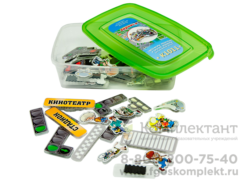 Комплект тематических магнитов представляет собой набор из магнитов в виде дорожных знаков и объектов городской социальной инфраструктуры.