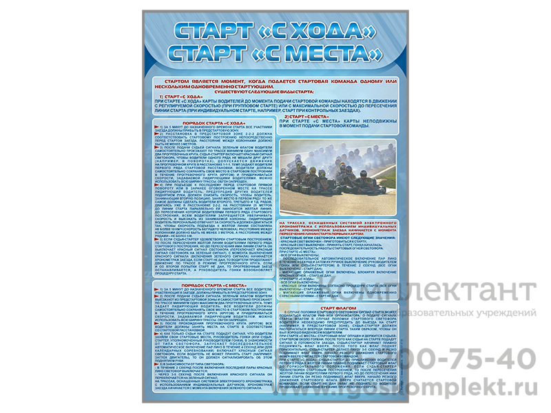 Стенд представляет собой информационную панель, на которой размещены сведения о видах стартов на картинговой трассе.