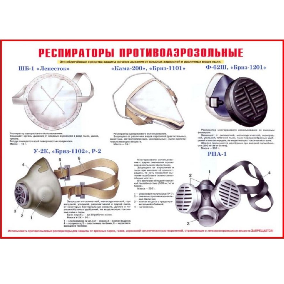 Комплект плакатов "Средства защиты органов дыхания. Противогазы респираторы" 10 шт