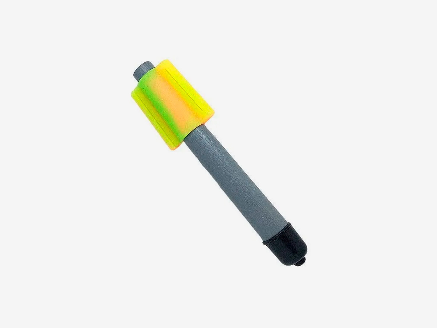 Логопедический массажер состоит из пластикового корпуса-трубочки с помещенным внутрь вибрирующим механизмом. Вибрирующий механизм приводится в действие элементом питания AAА, путем нажатия кнопки в основании.