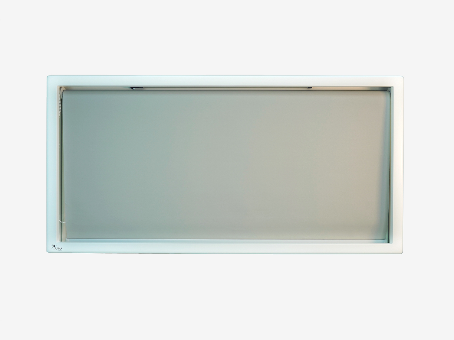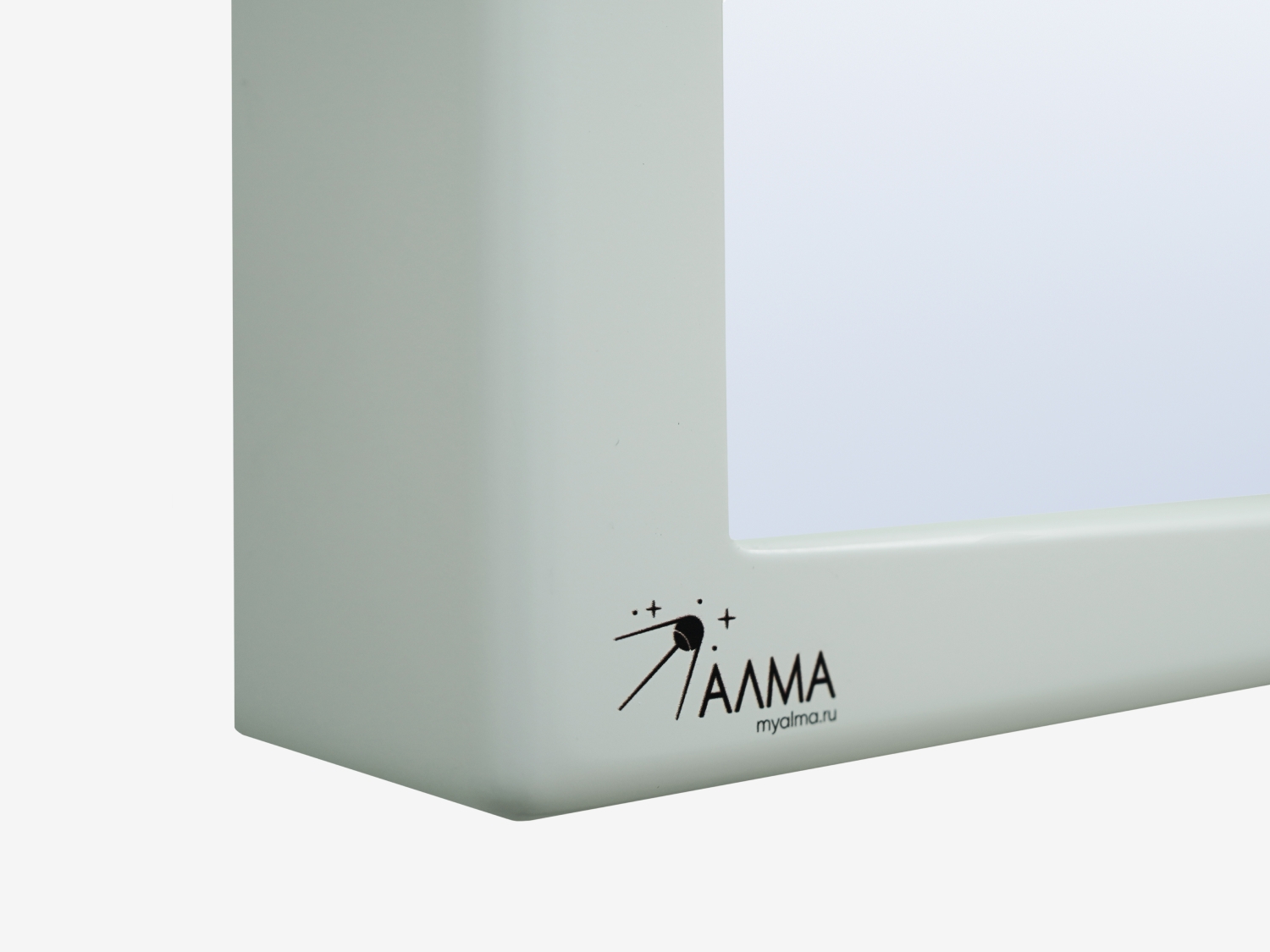 По рекомендациям практикующих специалистов мы встроили в зеркало светодиодную подсветку с мягким теплым светом и дополнили оборудование рулонной шторой. Конструкция крепится к стене или к мобильной стойке с помощью кронштейна.
