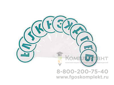 Изготовлена из пластмассы. Представляет собой комплект пластинок, соединенных аналогично соединению деталей веера, с буквами, обозначающими согласные звуки русского языка. Буквы выполнены крупным шрифтом и нанесены яркой краской.