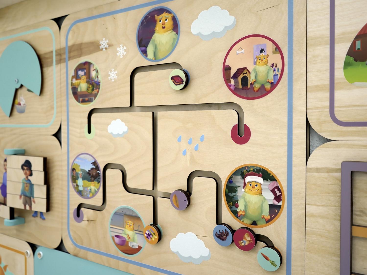 Дидактические панели отлично дополняют наборы цветных и иллюстрированных стеновых панелей, которые позволят оформить всё помещение в едином стиле.