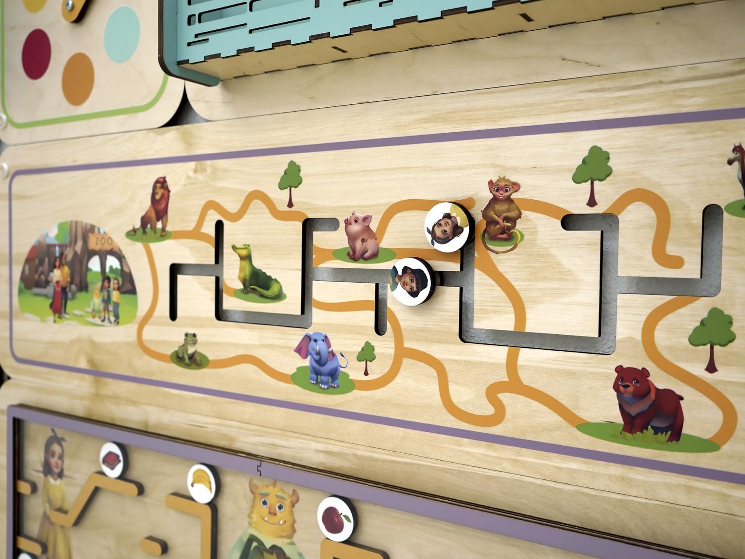 Лабиринт «Зоопарк» помогает отработать слова по теме «Животные». Дети проходят лабиринт, называют животных на английском языке и описывают их внешний вид.