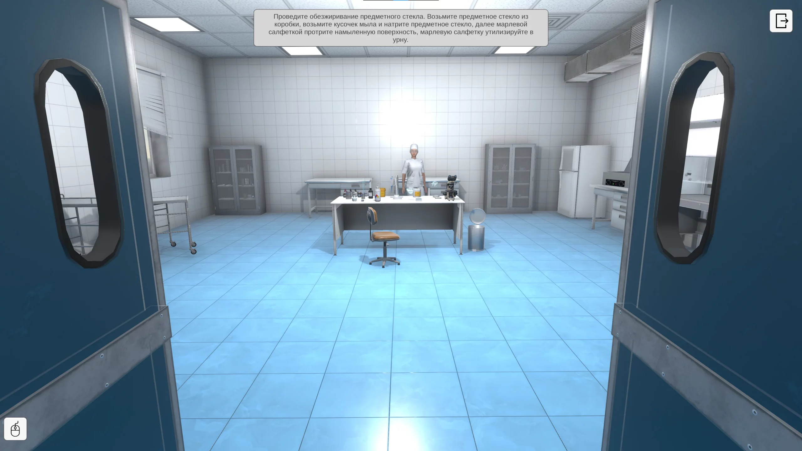В тренажере реализованы сценарий лабораторных работы с микроскопированием