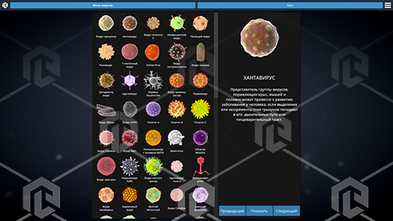 Виртуальный лабораторный комплекс, позволяющий при помощи трехмерной графики и анимации проводить исследование строения различных вирусов человек.