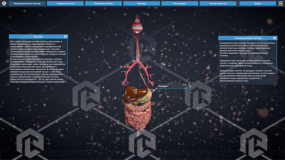 Специализированное программное обеспечение, позволяющее при помощи трехмерной графики и анимации изучить строение пищеварительной системы человека.