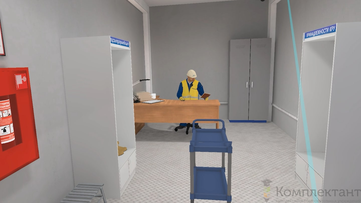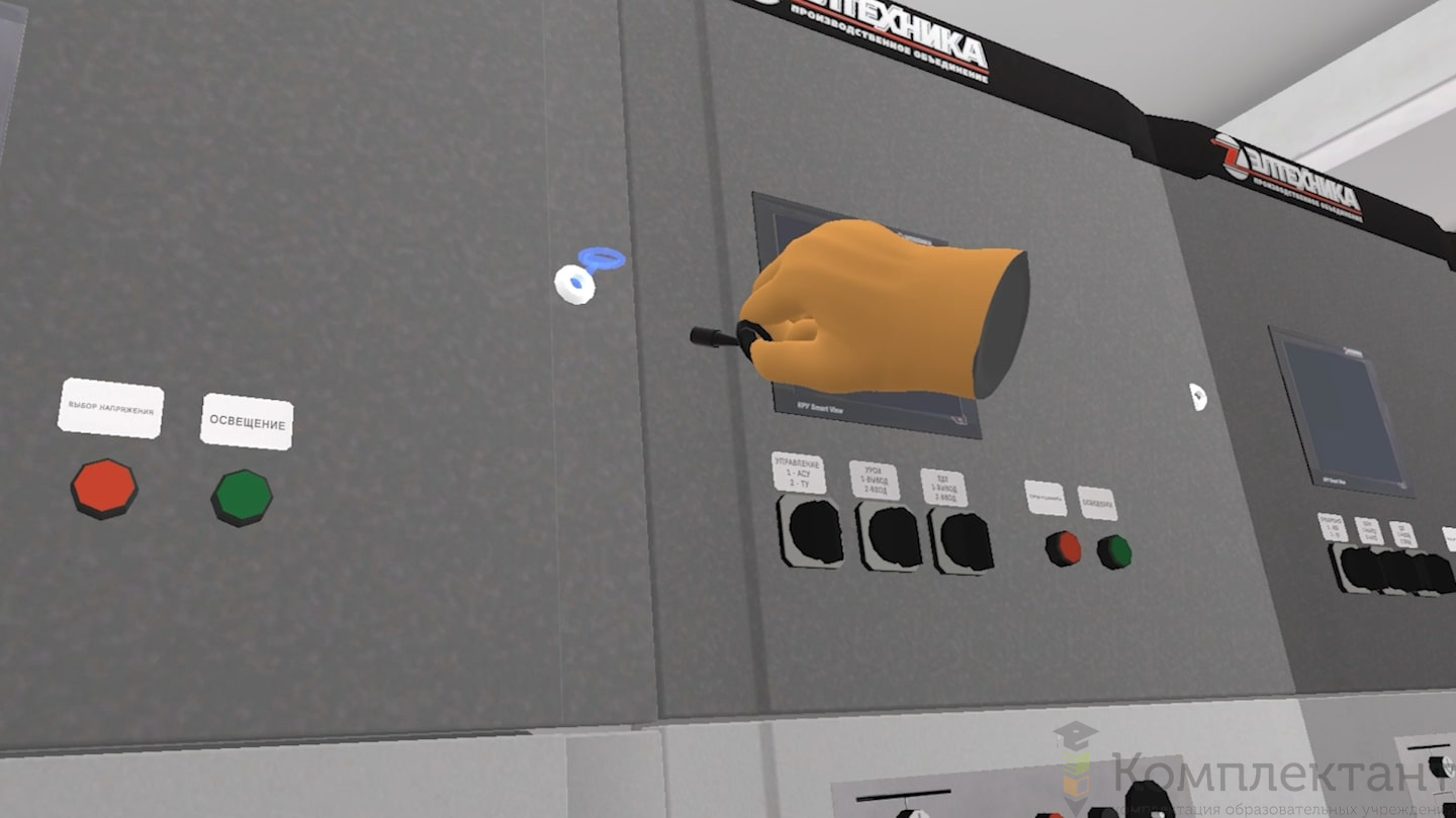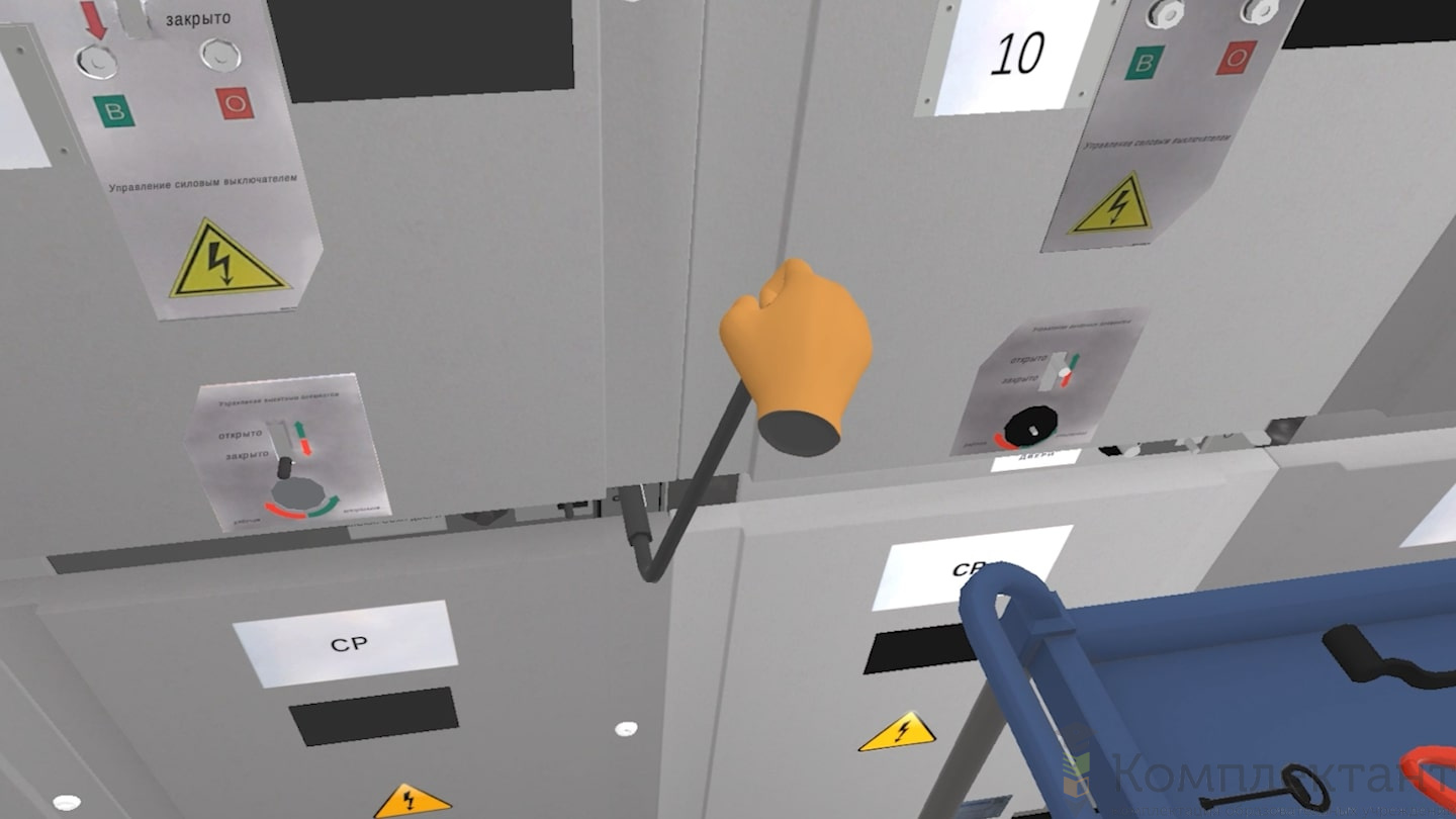 Виртуальный (VR) тренажер «Электробезопасность 2-4 группы» позволяет пользователю подготовиться к отключению ячейки КРУ и всем необходимым этапам проведения работ. В состав тренировки пользователя входят:
