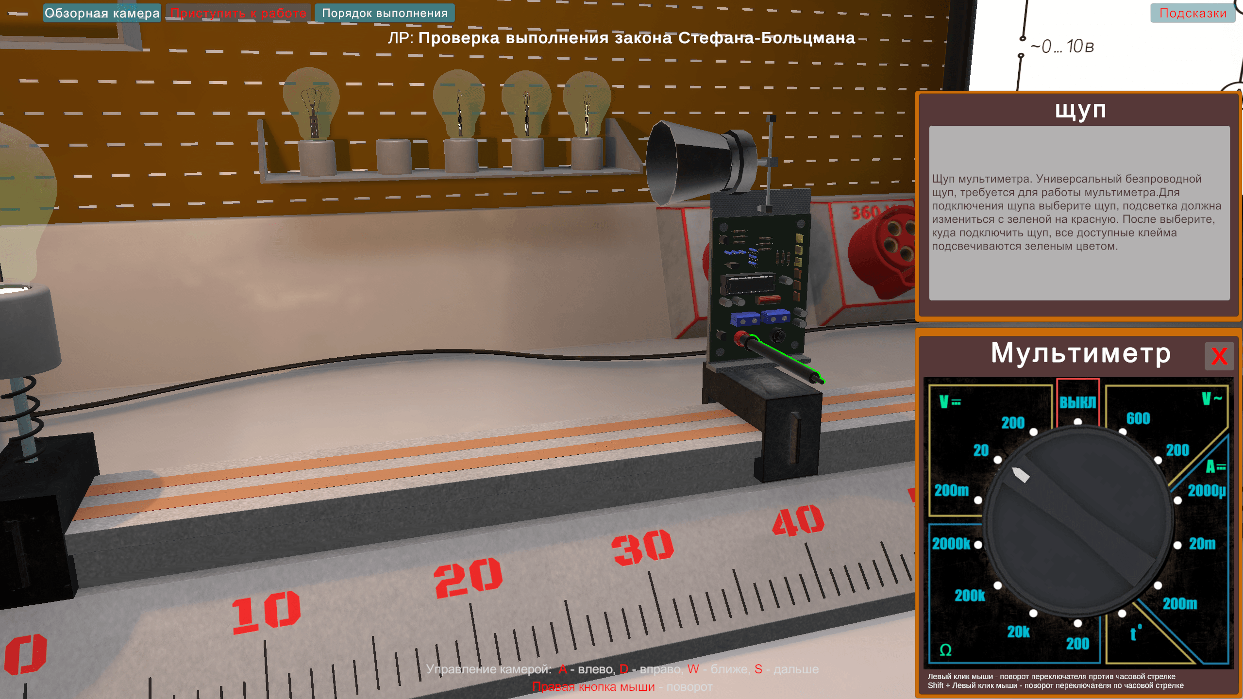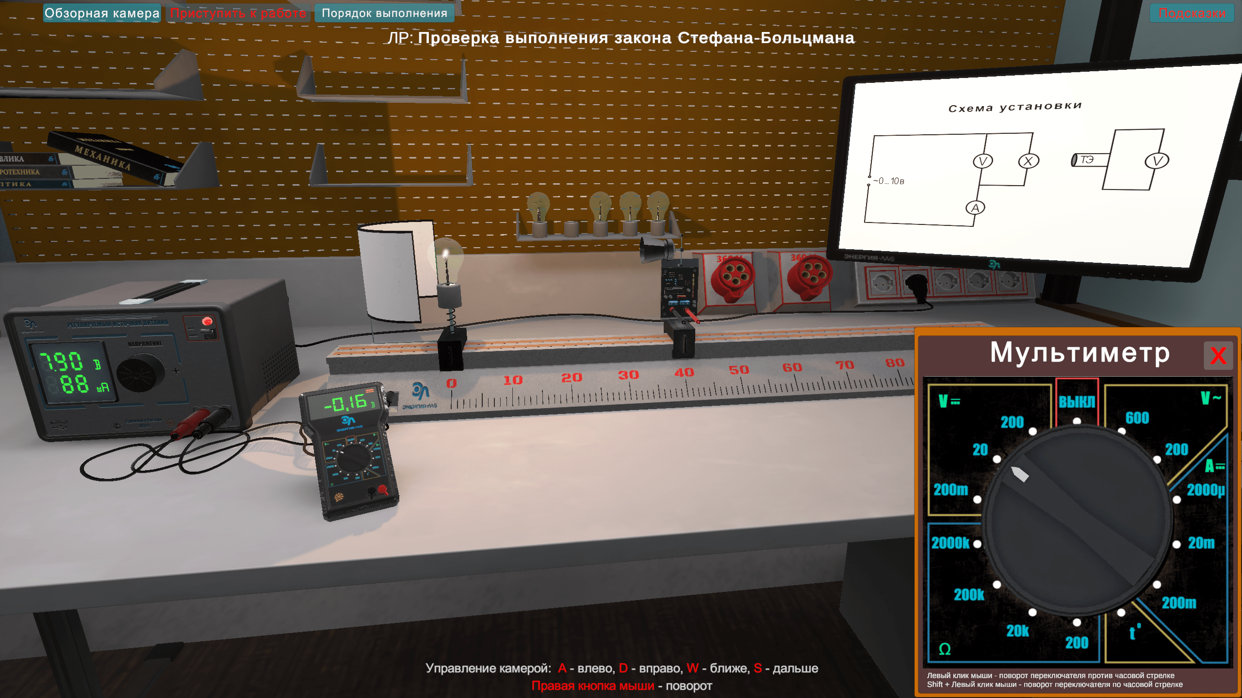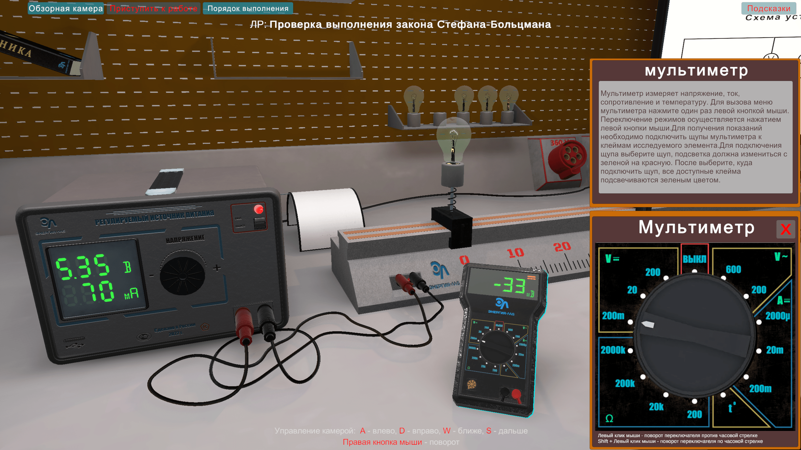 Виртуальная работа «Выполнение закона Стефана-Больцмана» выполняется в программном виртуальном продукте и предназначен для интерактивного выполнения лабораторной работы.
