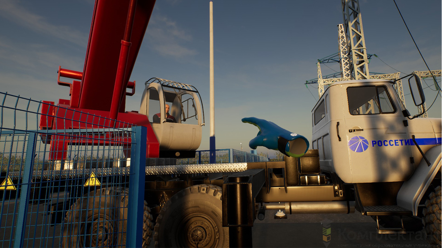 Виртуальный (VR) тренажер «Обслуживание силового трансформатора 110кВ» предназначен для формирования, закрепления (проверки) и поддержания профессиональных умений у работников электросетевых предприятий при выполнении работ согласно типовым технологическим картам, при действии обучаемого одиночно так и в составе ремонтной бригады с использованием виртуальной реальности в многопользовательском режиме, основанных на погружении обучаемого в приближенную к реальной ситуации виртуальную среду, обеспечивающей эффективное использование образной памяти обучаемого.
