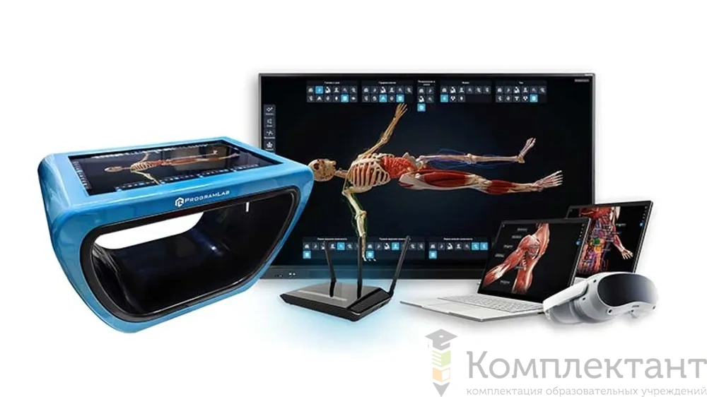 Комплексное оснащение анатомического класса для обучения с помощью интерактивного анатомического стола PL-Anatomy Tab (в варианте из стеклопластика, либо из металла).