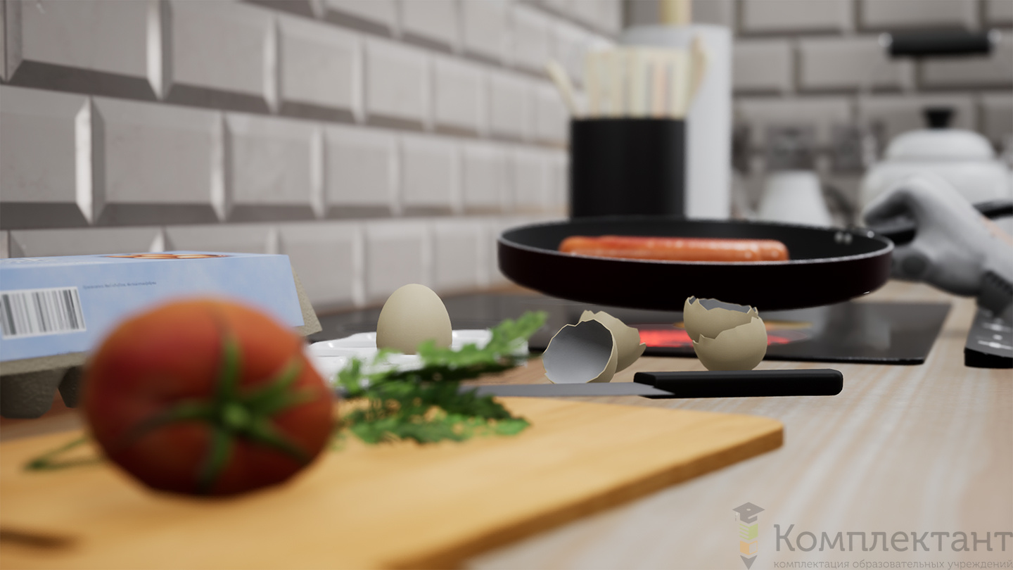Виртуальный (VR) тренажер «Виртуальная кухня» — безопасный симулятор объектов, которые окружают нас в обычной жизни каждый день. Приложение имеет широкий круг возможностей и предлагает пользователю взаимодействовать со множеством предметов, находящихся в кухне различными способами.