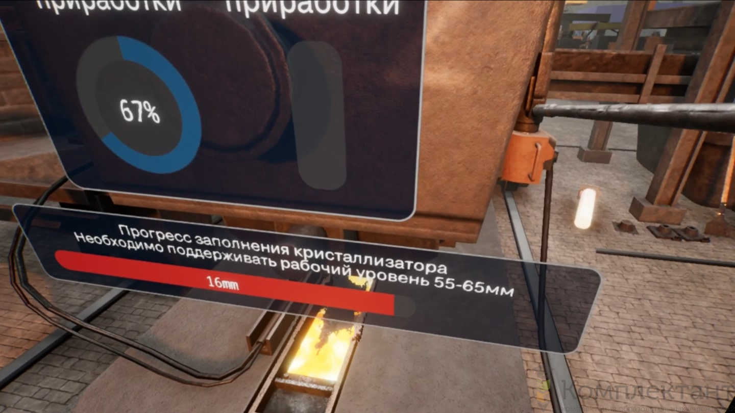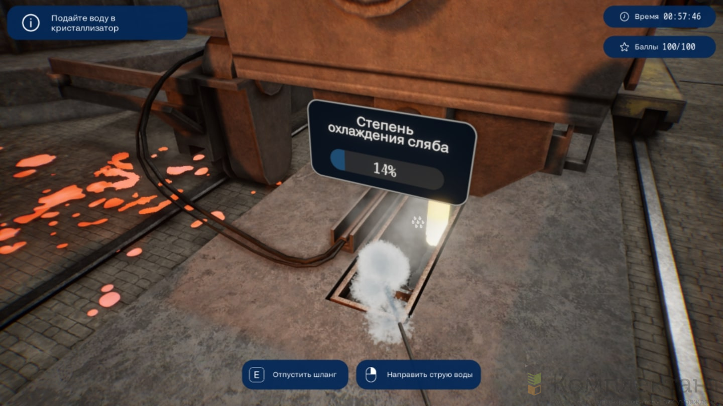 Тренажер «Некрытие шибера стальковша» воссоздает ситуацию, в которой пользователь отрабатывает действия при аварийных ситуациях в работе с жидким металлом, а именно контролирует процесс разливки стали и при аварийных ситуациях переключает систему в ручной режим, устраняет негативные последствия аварии и стабилизирует ситуацию. Доступен VR и ПК режим.