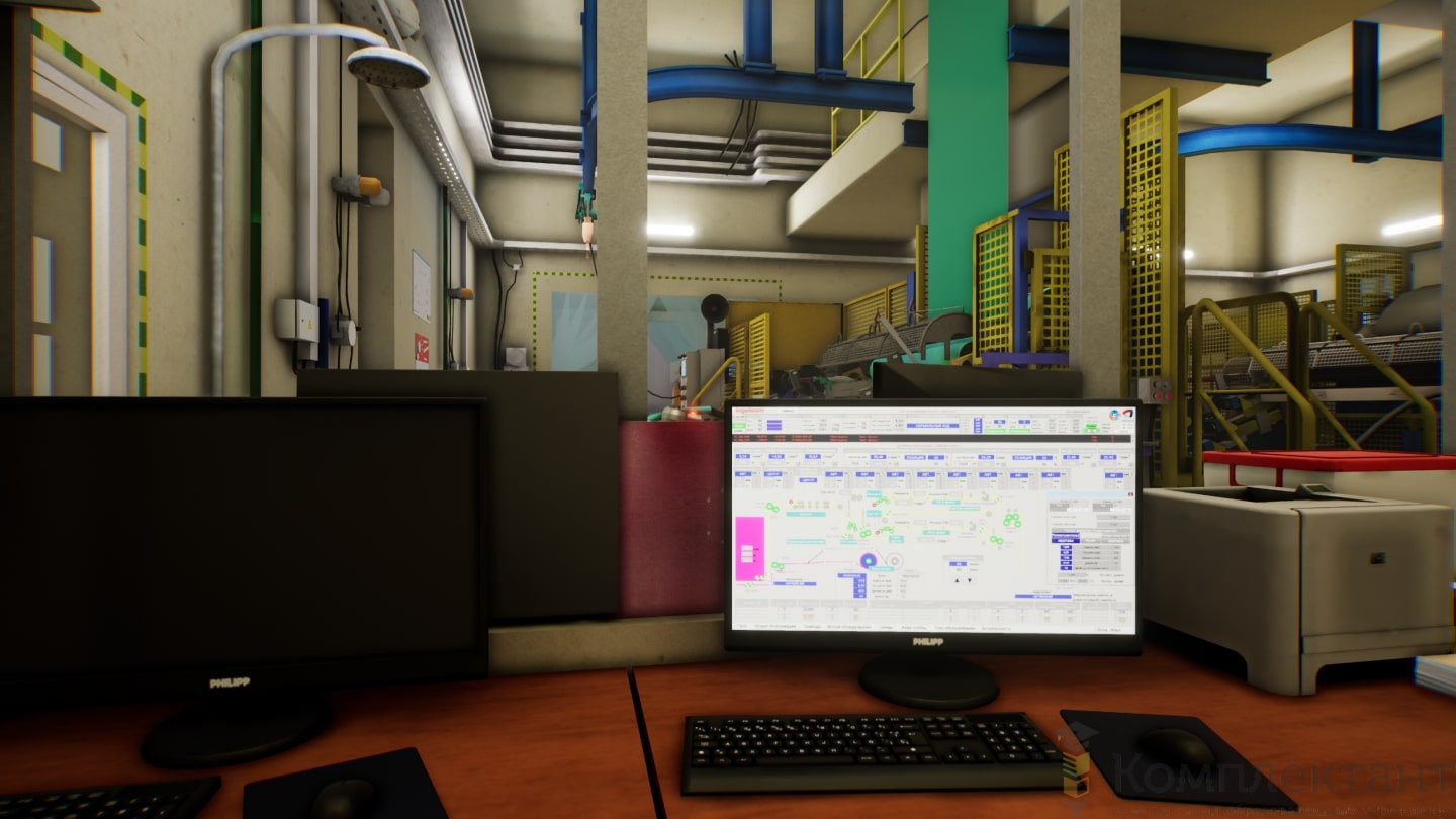 Тренажер «Оператор коутера» предназначен для обучения сотрудников по специальности оператор поста управления агрегатами непрерывного травления, обезжиривания, лужения, оцинкования, лакирования и отжига (коутер) ЦПМ-3 (цех покрытия металлов-3) производства плоского проката. Доступны VR и ПК режимы.