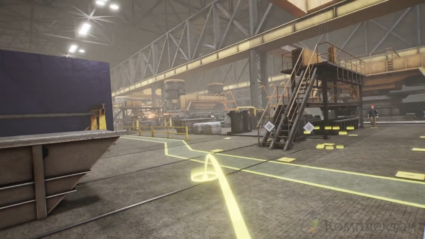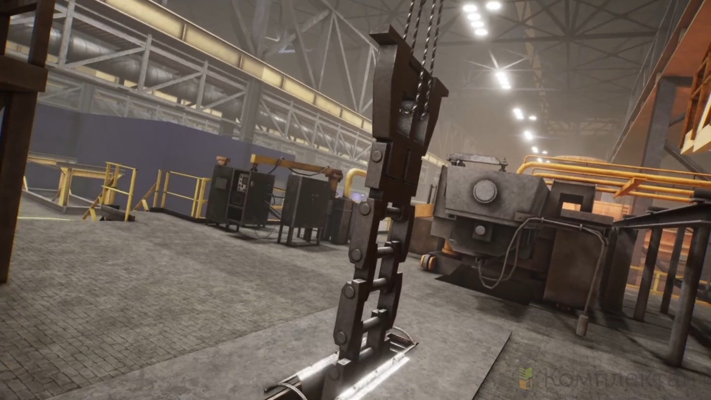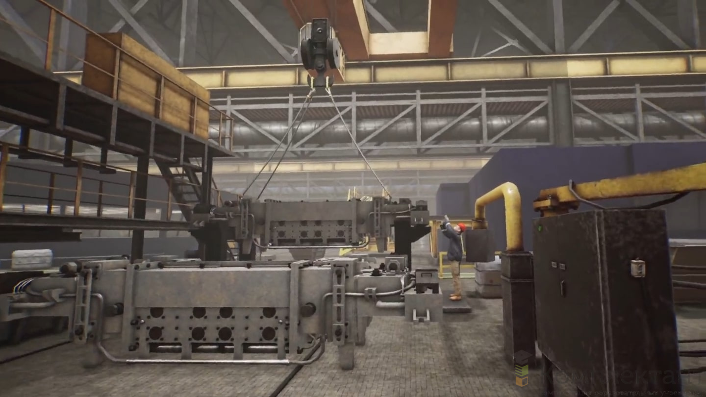 Тренажер Оператор машины непрерывного литья заготовок. Установка непрерывной разливки стали предназначен для повышения уровня профессиональных навыков управления технологическим процессом с одновременной теоретической и практической подготовкой на конкретном рабочем месте операторов МНЛЗ (машины непрерывного литья заготовок). Отработка следующих операций: подача сигнала машинисту крана, перевозка затравки при помощи ГПМ, заведение затравки в кристаллизатор, замена секций. Доступны VR и ПК режимы.