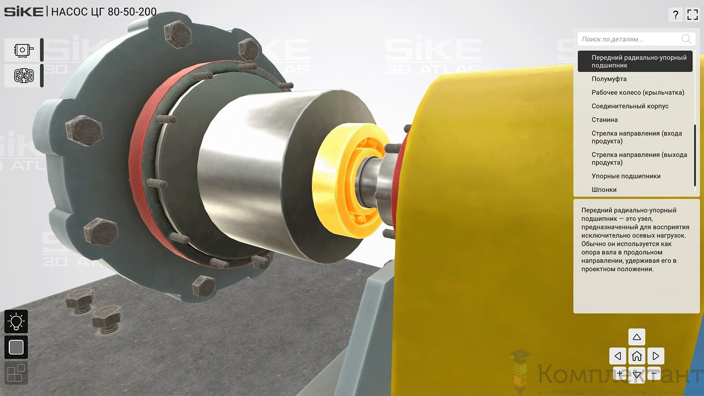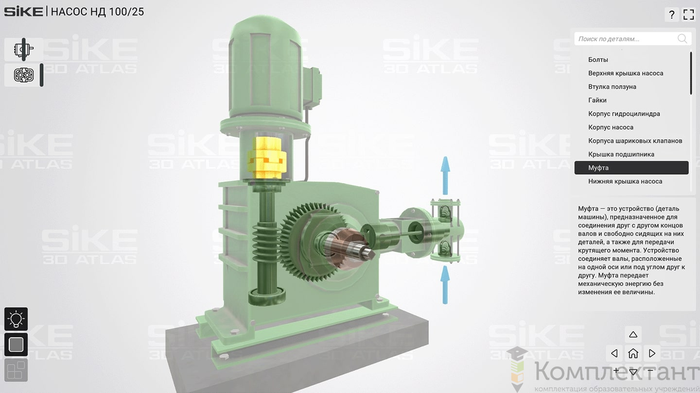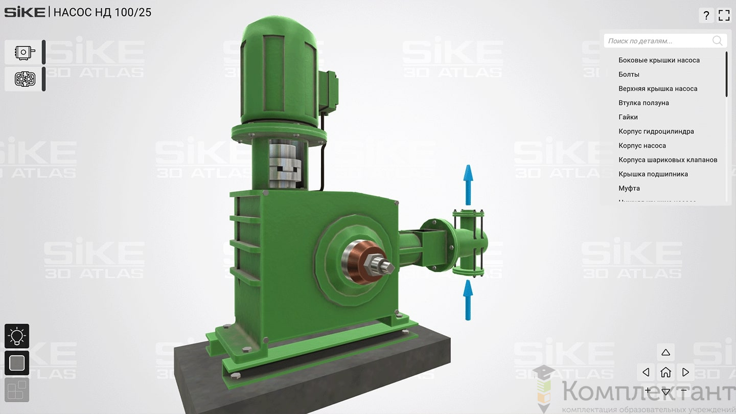 Перечень изучаемого оборудования в 3D Атласе «Устройство нефтяных насосов типа НК»: