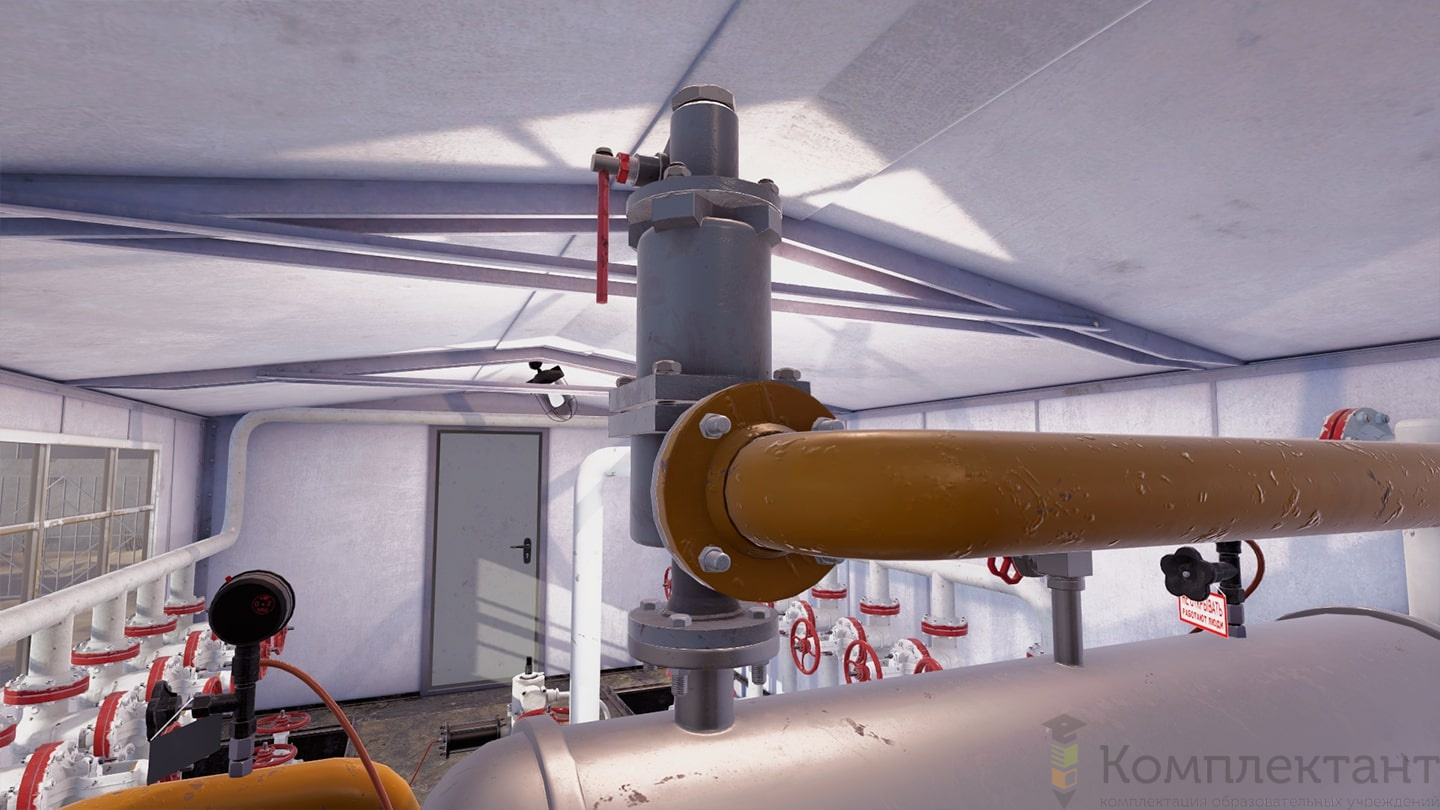 Виртуальный (VR) тренажер «Ревизия, ремонт, испытание пружинных предохранительных клапанов типа СППК» воссоздает ситуацию, в которой пользователь попадает в технологический блок. Там ему необходимо демонтировать пружинный предохранительный клапан, далее отремонтировать его и испытать с помощью устройства тарировки. Тренажер формирует навыки регламентного осмотра и ревизии пружинного предохранительного клапана типа СППК, а также его испытание. Благодаря детальной проработке трёхмерной модели клапана типа СППК и его деталей достигается эффект погружения в симуляцию. Процесс ревизии объекта максимально приближен к реальному и даёт возможность множественной сборки и разборки объекта.