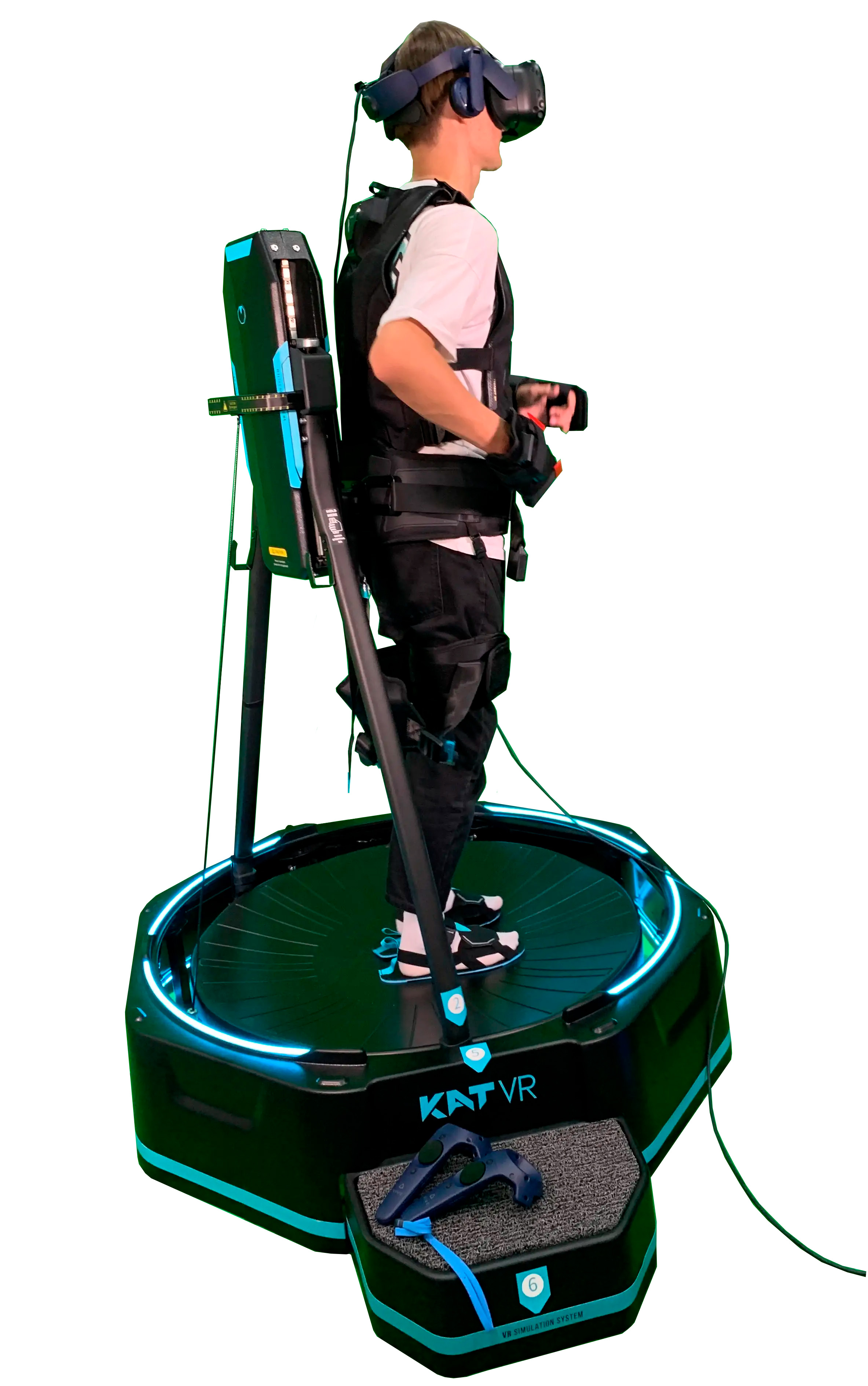 Платформа типа Kat Walk позволяет перемещаться в виртуальном пространстве, совершая полноценные шаги, повороты, бег, прыжки. За счет особого покрытия на платформе одинаково просто и комфортно ходить и бегать. Для этого используются специальные VR-кроссовки.