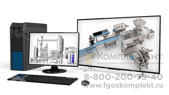 Специализированное программное обеспечение, в котором реализованы трехмерные модели и пульты управления, являющиеся аналогами реального оборудования цеха по консервированию мясной продукции.