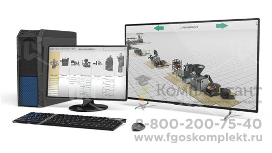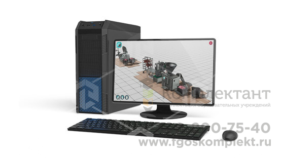 Виртуальный учебный комплекс, в котором реализованы трехмерные модели и пульты управления, являющиеся аналогами реального оборудования линии по производству мясных продуктов и полуфабрикатов.