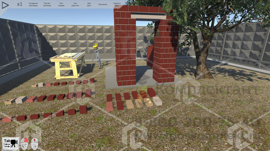 Во время демонстрации процесса каменной кладки есть возможность выбрать тип кирпича (для каждого типа имеется собственная высококачественная 3D модель).