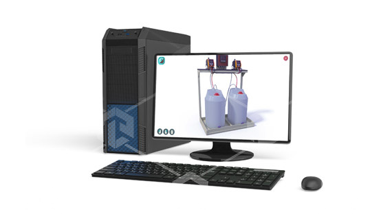 Специализированное программное обеспечение, в котором реализованы трехмерные модели, являющиеся аналогами емкостей растворных и расходных баков. Предназначено для изучения работы емкостей баков коагулянта и флокулянта.