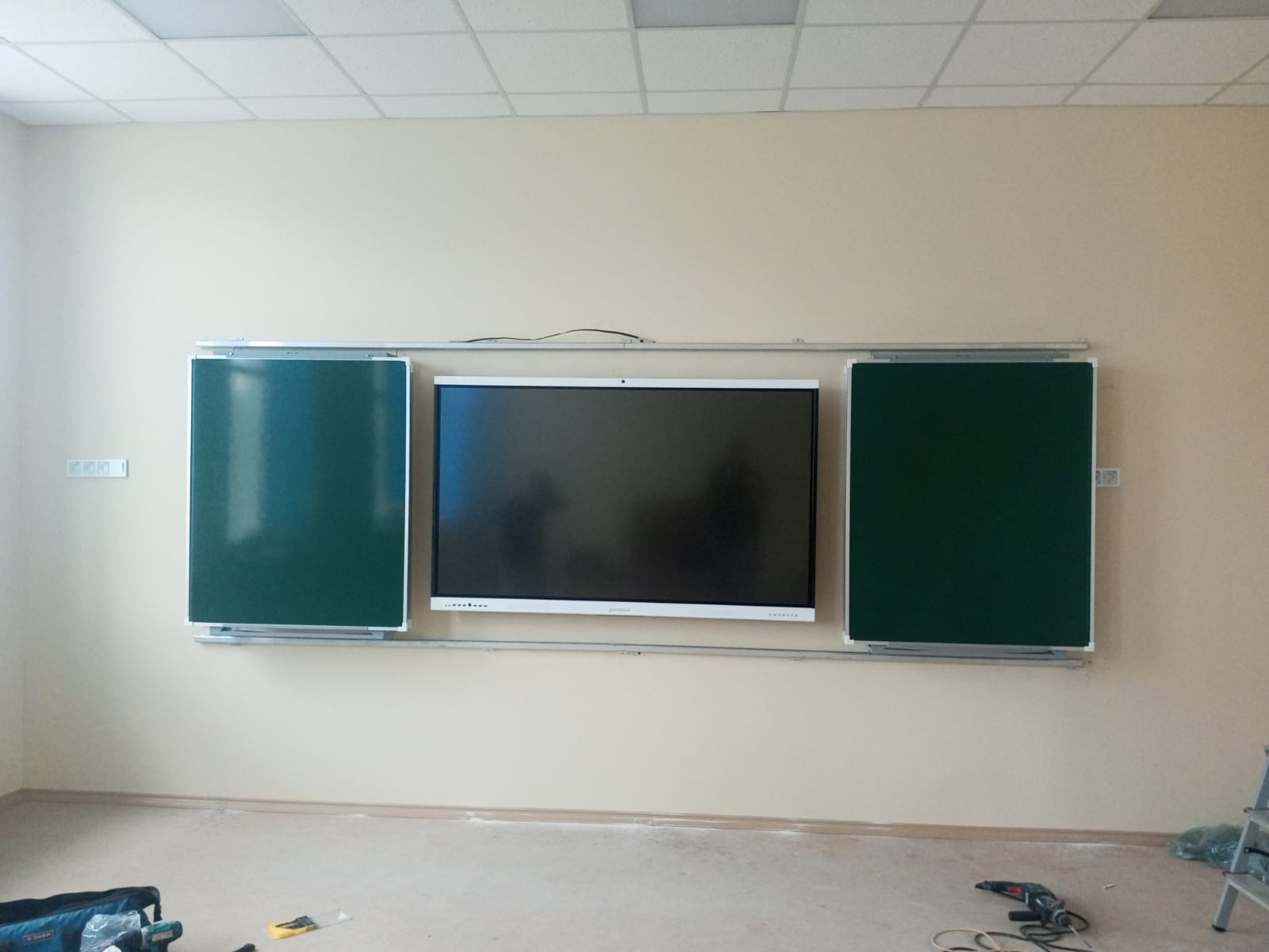 - Подбор оборудования – были выбраны современные интерактивные комплексы с рельсовой системой, отвечающие всем требованиям образовательного процесса.